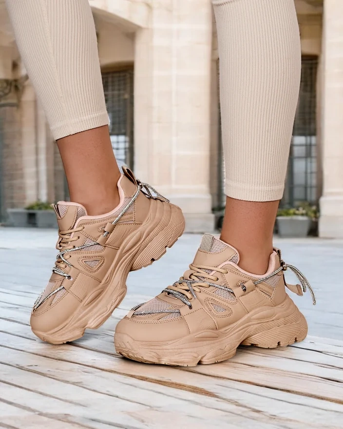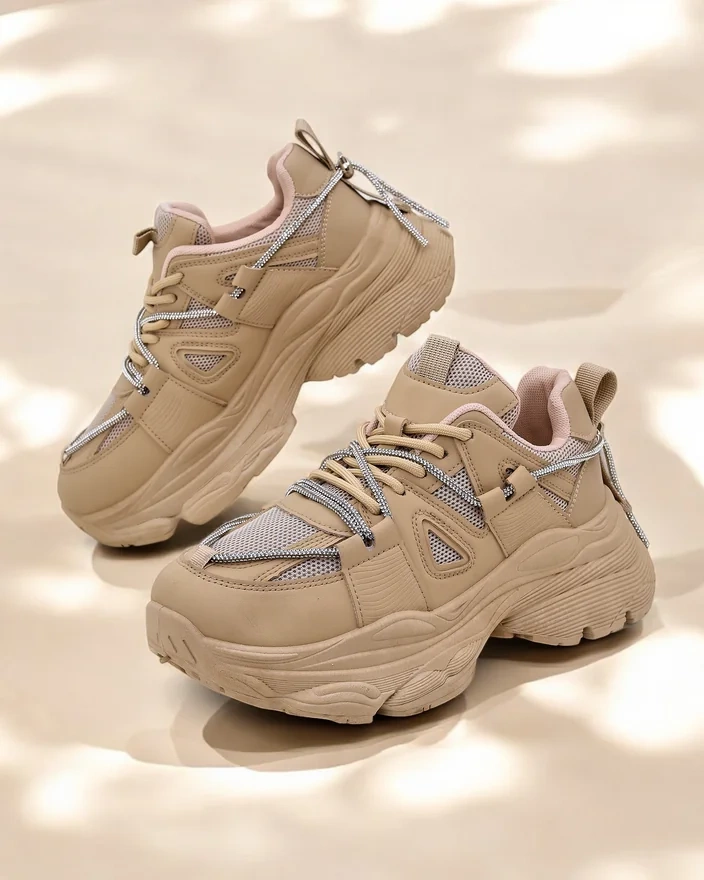 - Naiste spordijalatsid tenniste stiilis paksu tallaga. Valmistatud ökoliidist kangas sisemetega. Sisetald on ökoliidist. Suurepärane lisand teie igapäevastele vabaaja riietusele!