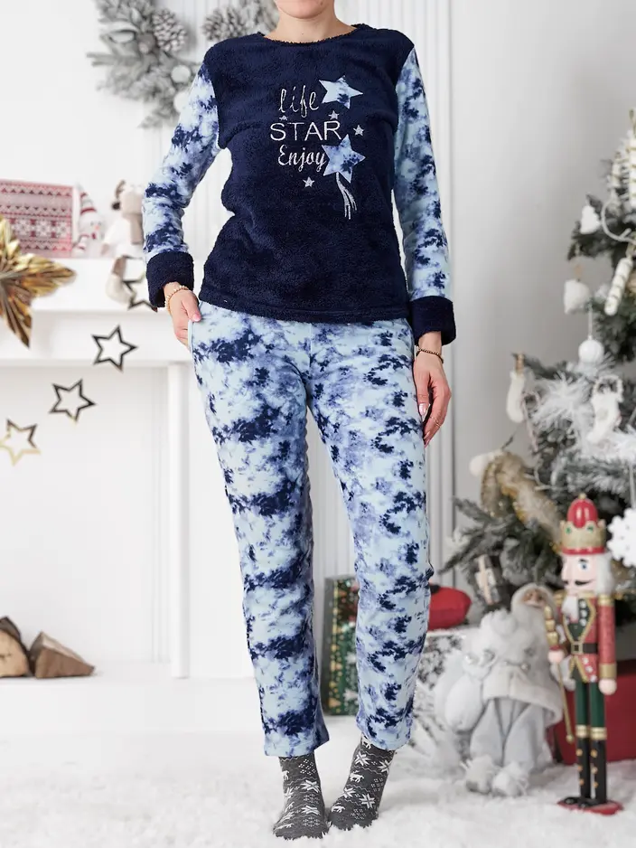 - Naiste 2-osaline pidžaamase Komplekt pikkade varrukatega ja pikkade jalgadega, valmistatud fleece- sarnast materjalist. Mudel on kaunistatud mustriga. Täiuslik hubasteks õhtuteks kodus! MÄRKUS: Mõõtmise täpsus (+/-) 1 cm.