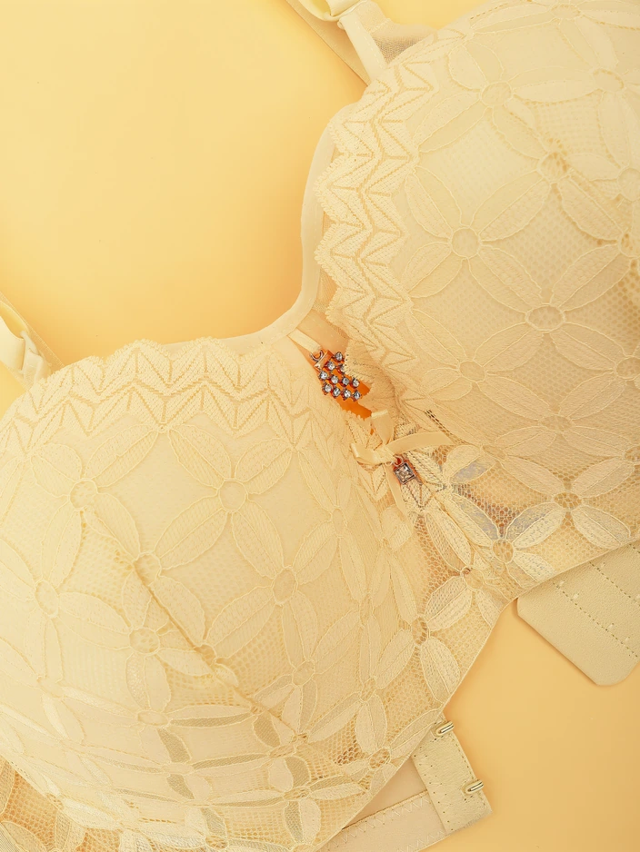 - Elegantne naiste padjaga rinnahoidja, mis on valmistatud meeldivast pehmest materjalist. Mudelil on dekoratiivne pits ja eemaldatavad, reguleeritavad rihmad, tagumine nööp. MEENUTUS: mõõtmise täpsus (+/-) 1 cm.