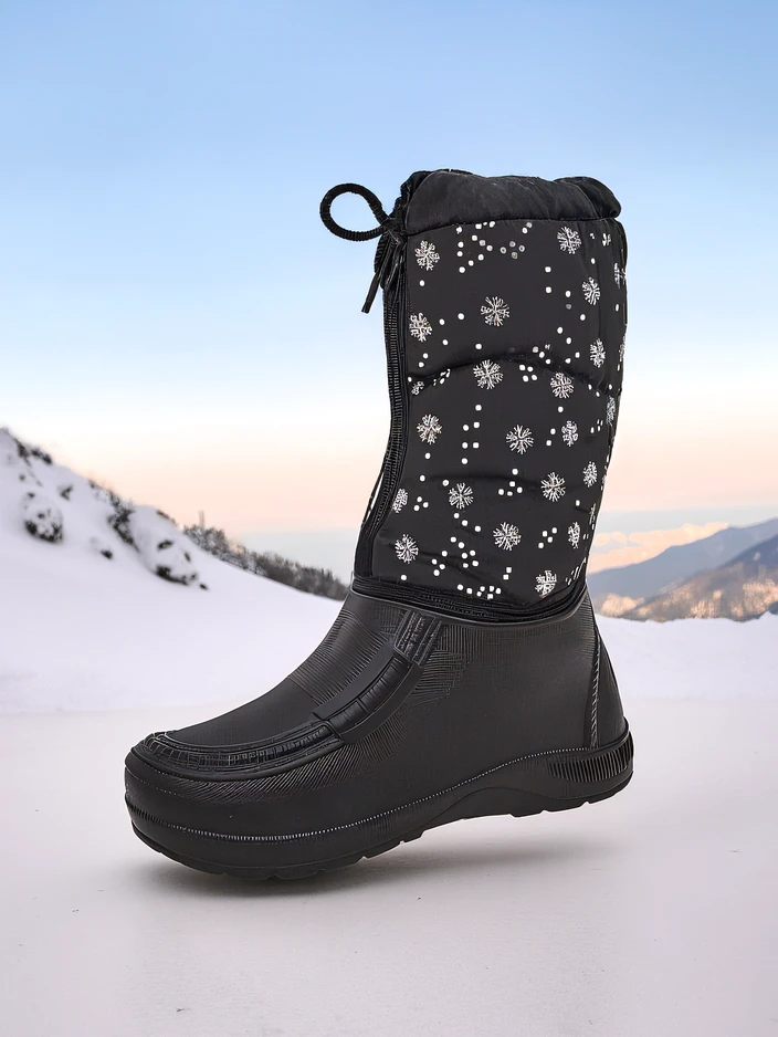 - Suurepärased naiste talvised lumekotid madala kontsaga. Ülaserv on valmistatud kummipõhjast ja kangast, mis meenutab õlivilla, sisemus on vooderdatud sooja karvaga. Keskel luku sulgus. Ideaalne alus talveks!