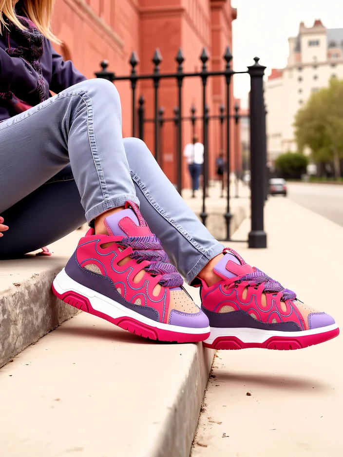 - Moodne naiste sportlikud tenisajad paksemate talladega, valmistatud ökoloogilisest nahast ja ökoloogilisest nubukist. Sisel on kangas siseosa ja mudel on seotud. Need on suurepärane lisand igapäevastes riietustes.