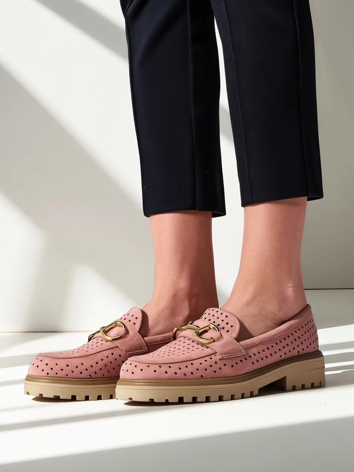 - Imelised perforatsiooniga naiste loafers paksemal tallal. Mudel on juhuslikus stiilis ja valmistatud ökoloogilisest nahast, seesmine tall on ökoloogilisest nahast. Jalatsid on peene kaunistusega ülaosas. Täiuslikud sügisriiete jaoks!