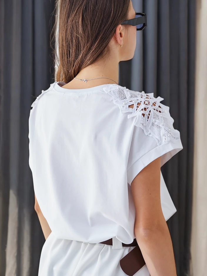 Royalfashion Naiste puuvillane T-särk pitsilised varrukad