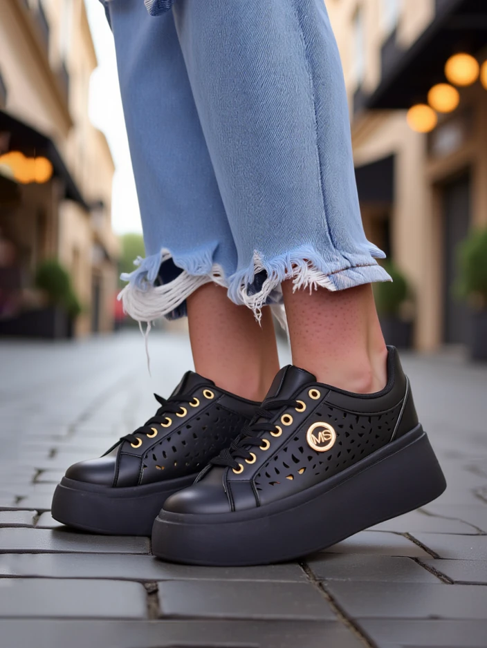 • Naiste ažuursed platvormiga tossud, mis on valmistatud öko-nahast ja tekstiilist sisetallaga, ühendades mugavuse moeka stiiliga. Ideaalne igapäevaseks kandmiseks, tagades kerguse ja mugavuse ning peen disain lisab igale riietusele elegantsi.