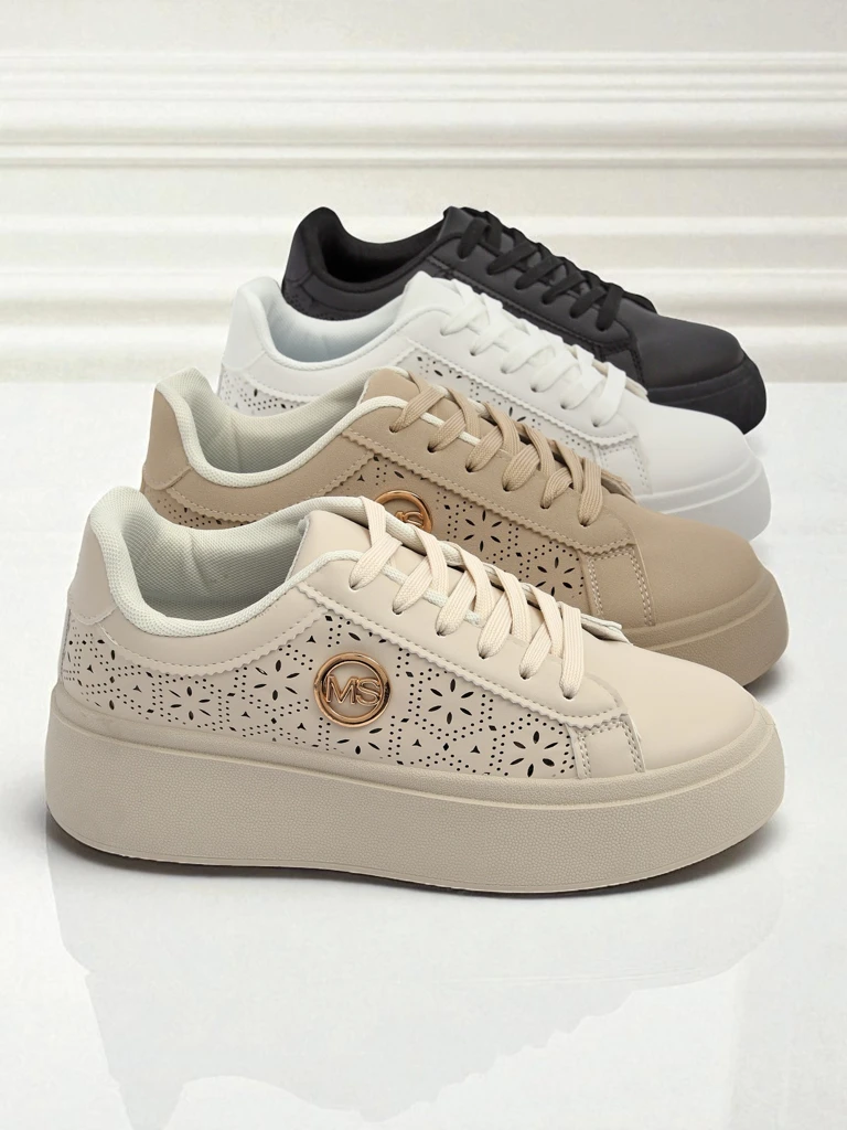 Naiste ažuursed öko-nahast ja tekstiilist sisetallaga platvormil tossud, mis ühendavad mugavuse moeka stiiliga. Ideaalne igapäevaseks kandmiseks, tagades kerguse ja mugavuse, ning peen disain lisab igale riietusele elegantsi.