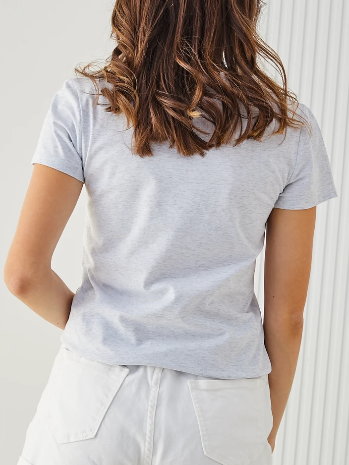 • Originaalne naiste särk ümmarguse kaelusega, valmistatud pehmest ja meeldivast kangast. Kogu särk on kaunistatud silmatorkavate sädelustega ning lühikesed varrukad lisavad kergus. Täiuslik valik moekate ja stiilsete riietuste loomiseks!