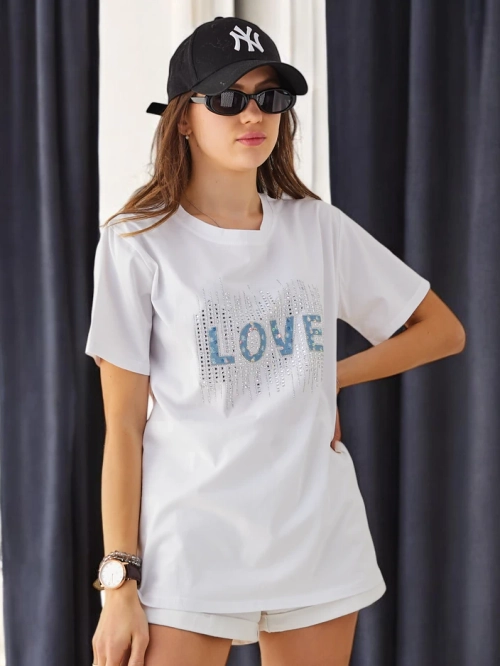 Royalfashion Naiste puuvillane T-särk ARMASTUS kristallidega