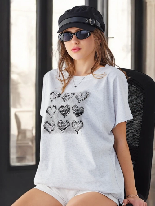 Royalfashion Naiste Puuvillane T-särk Palju Südameid