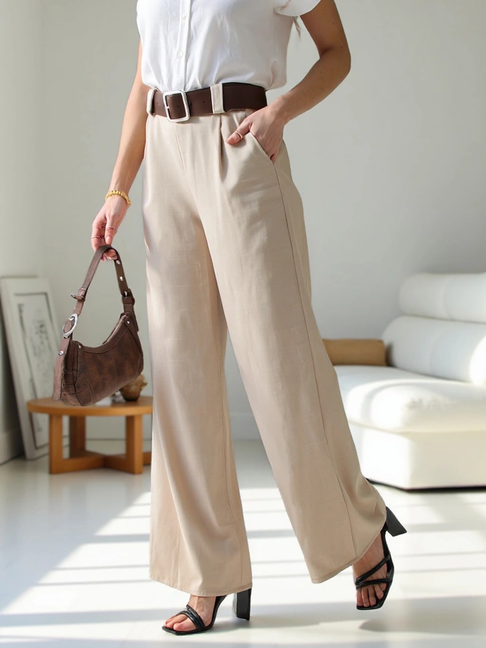 • Hämmastavad laiad püksid kerge kangaga, mudelil on 2 taskut ja elastne talje. Lisaks on kaasas vöö. Kohustuslik osa teie garderoobist! MÄRKUS: Mõõtmise täpsus (+/-) 1 cm.