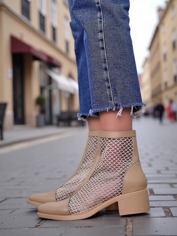 - Unikaalsed naiste sääre saapad, mis on valmistatud võrkkangasest ja ökoinnidest, perforatsiooniga viimistlusega ja ökoinnide sisetallaga. Mudel, mis on kinnitatud lukuga. Täiuslikud sügismaandmeteks!.