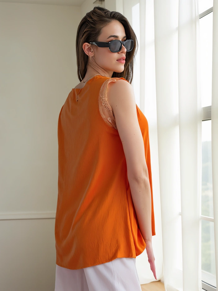 Royalfashion Naiste spagetikäistega bluus pitsiga