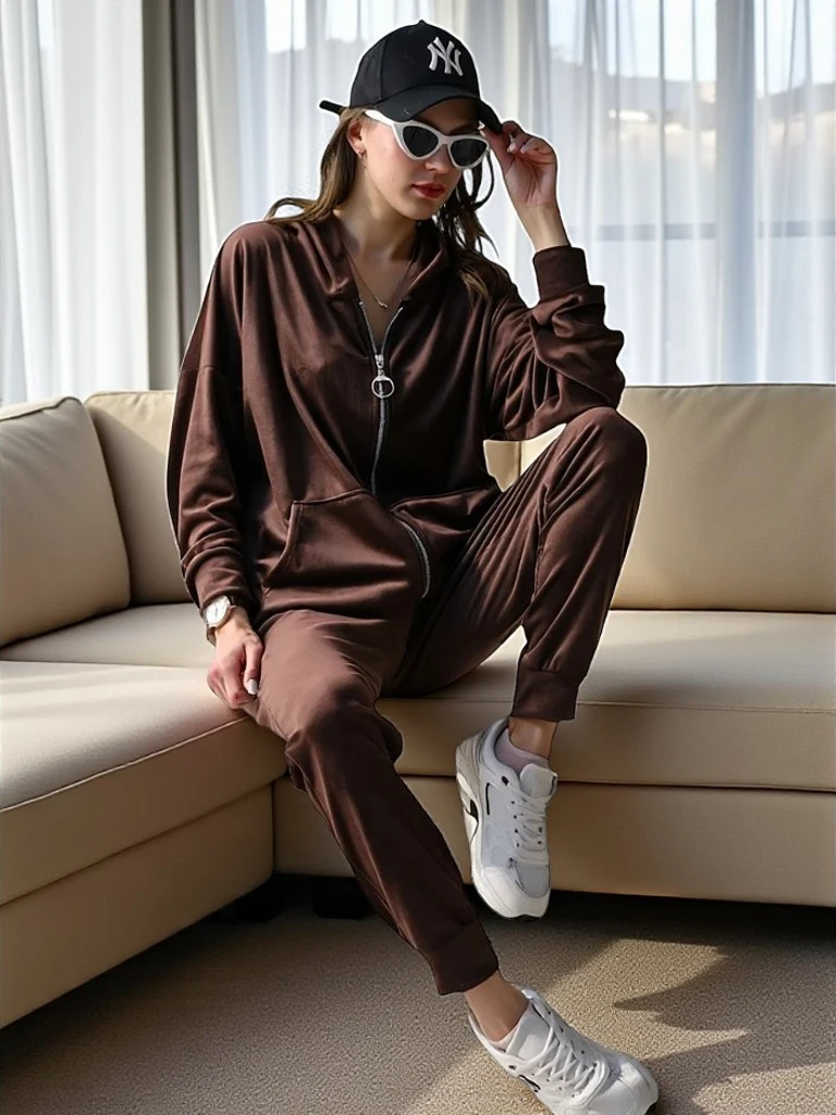 - Naiste komplekt a'la samet, mis on valmistatud meeldivast materjalist. Sisetaskuga kapuutsiga jope. Pikad püksid elastse vöökoha ja 2 taskuga. Tunne stiili selles imelises komplektis!