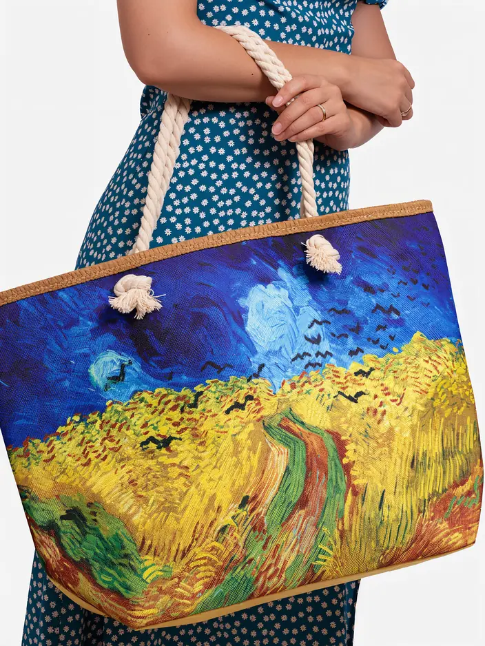 - Stiilne kangaskott, millel on print. Kotil on pikemad käepidemed, lukuga ja sees 1 tasku. See on suurepärane randade jaoks!
