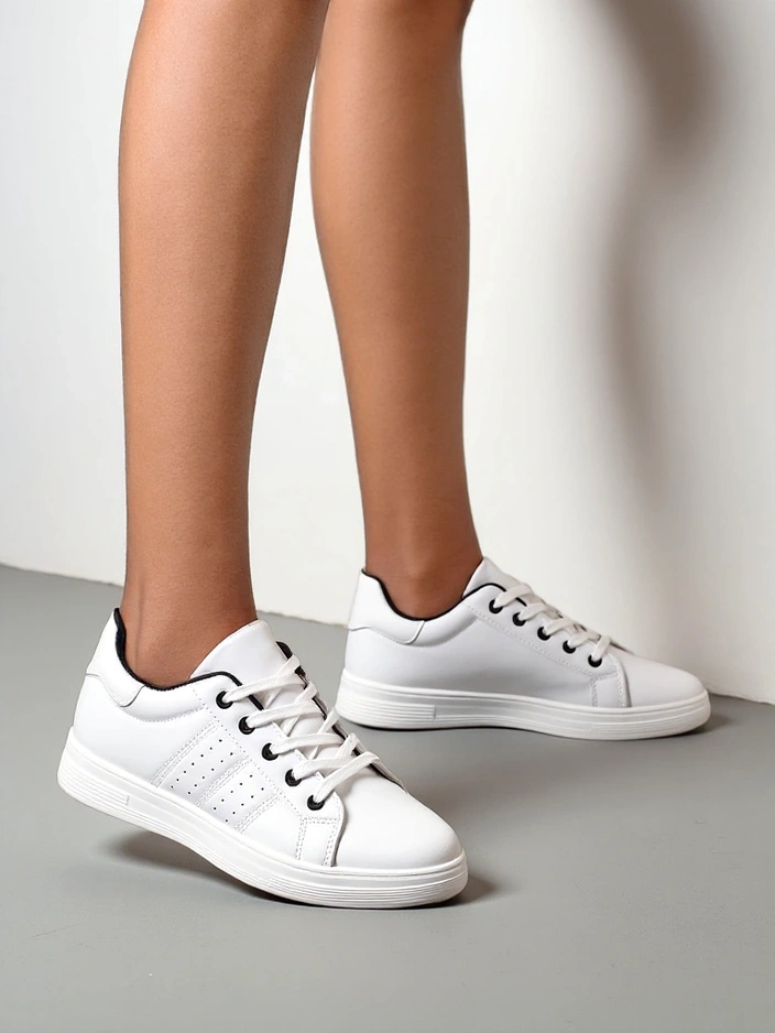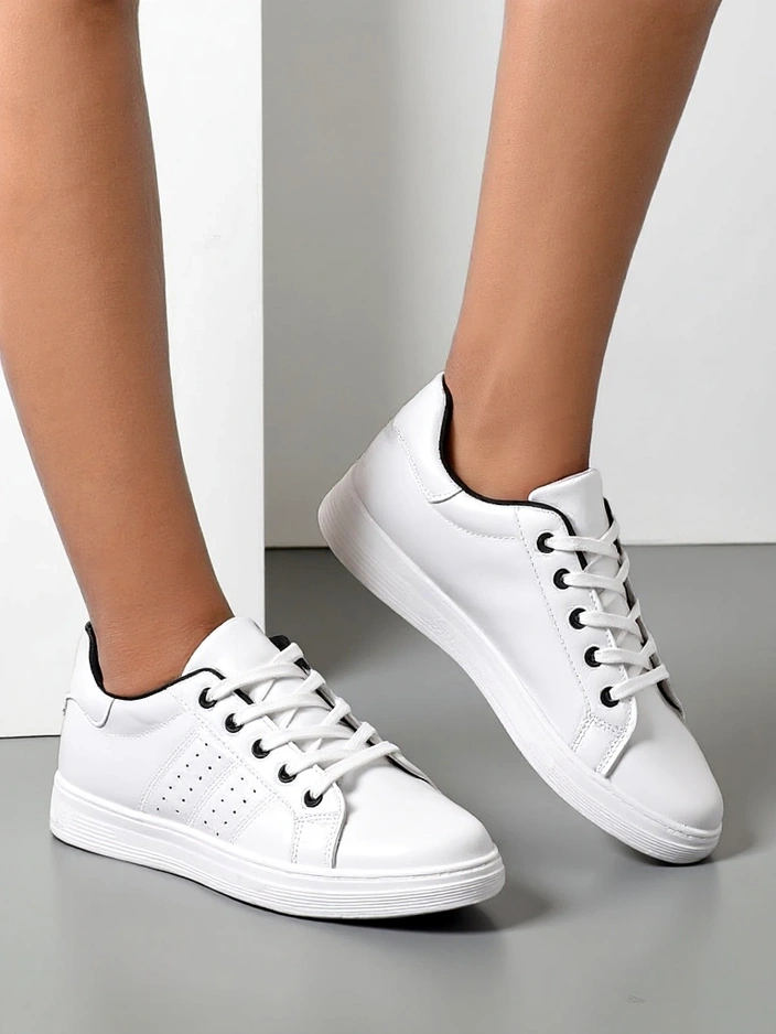 - Stiilsed naiste pitsiga spordijalatsid lamedal tallal. Pealne on valmistatud ökoloogilisest nahast. Seestpoolt kangast sisetald. Mugavad jalatsid igaks päevaks!