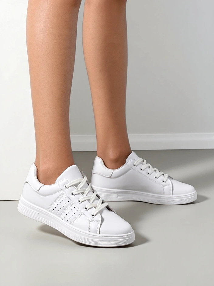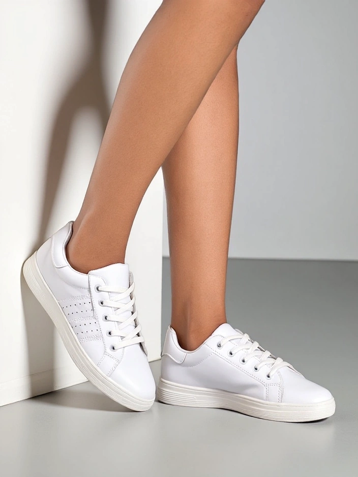• Stiilsed naiste pitsiga spordijalatsid lamedal tallal. Pealne on valmistatud ökoloogilisest nahast. Seestpoolt kangast sisetald. Mugavad jalatsid igaks päevaks!