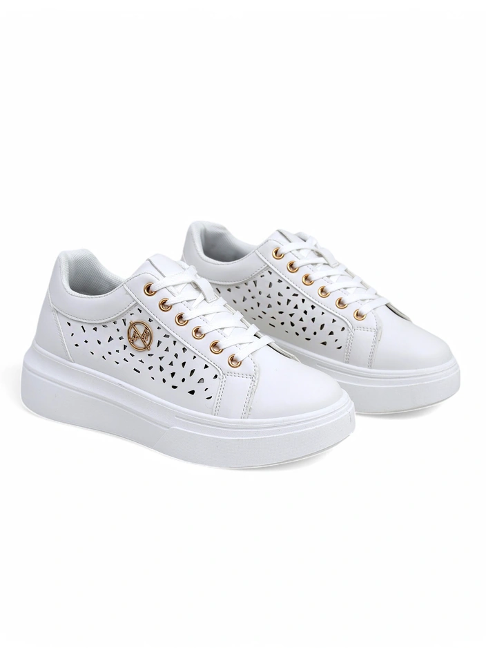 Naiste Calista Bianco öko-nahast ažuursed kevadised tossud, 4,5 cm