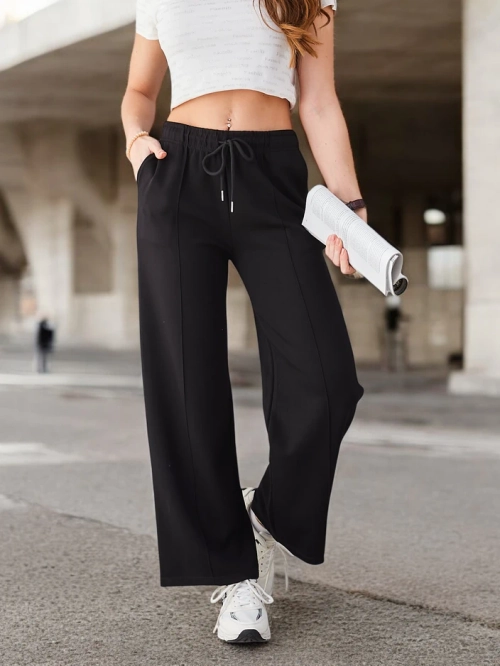 - Hämmastavad laiad püksid kergest kangast, mudelil on 2 taskut, elastne vöökoht ja drawstrings. Moekas disain voldiga. Kohustuslik ese teie garderoobis! MÄRKUS: Mõõtmise täpsus (+/-) 1 cm.