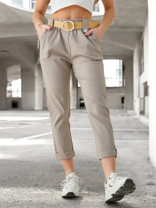• Fenomenaalsed kitsenevad püksid, mis on valmistatud kergest kangast, mudelil on elastne vöökoht ja vöö. Samuti on 2 taskut. Sel hooajal hitt! MÄRKUS: Mõõtmise täpsus (+/-) 1 cm.