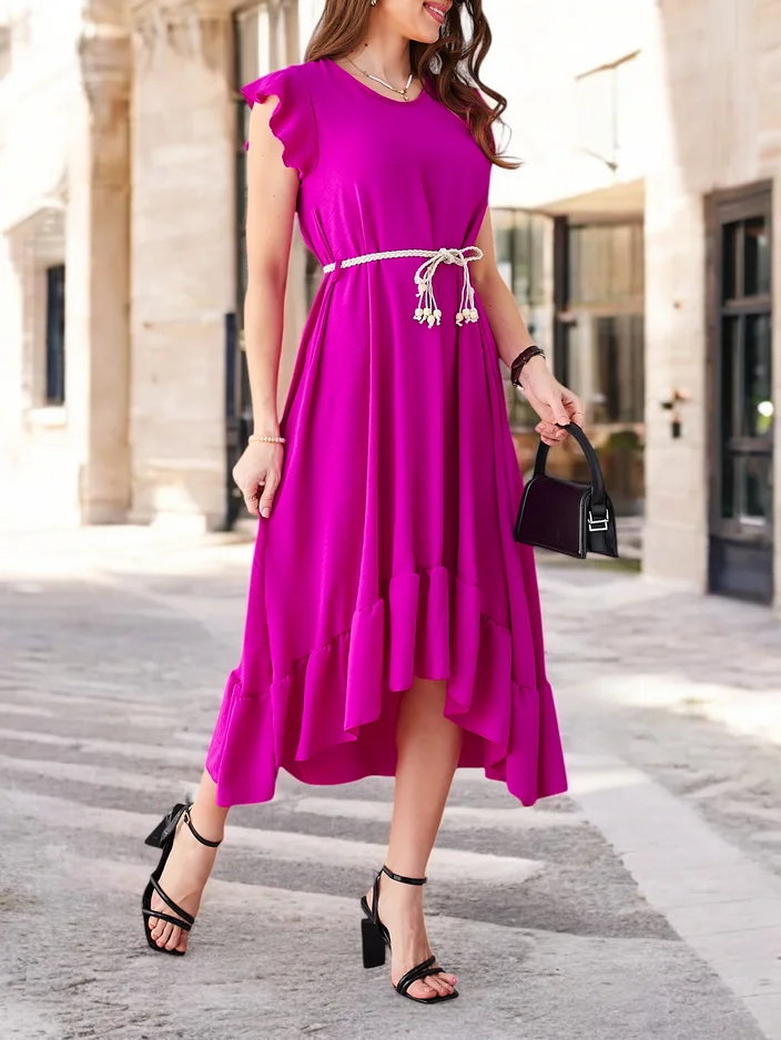 Royalfashion Naiste midi kleit volangide ja lühikeste varrukatega