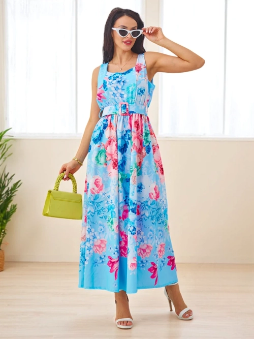 - Elegantne naiste viskoosiline midi kleit rihmadega ja lillemustriga vöö on kerge ja naiselik valik sooja ilma jaoks. Peene muster ja viimistletud lõige pakuvad stiilset ja mugavat välimust.