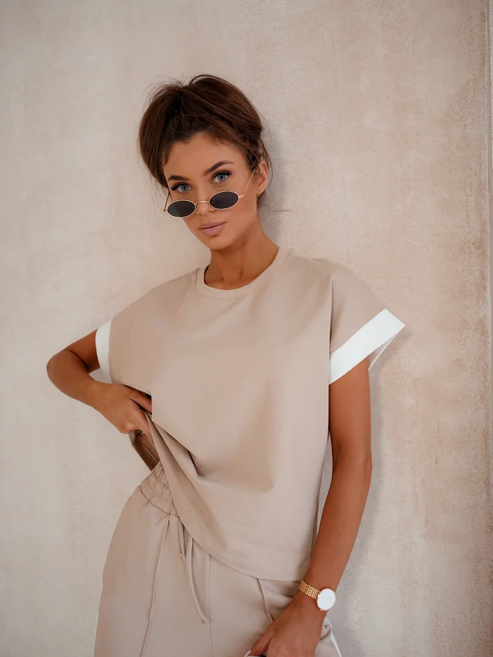 Royalfashion Naiste puuvillane komplekt lühikeste varrukatega ja laienevate pükstega