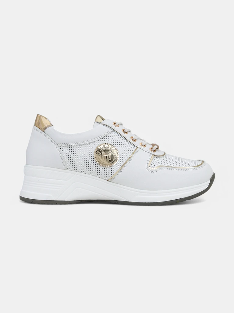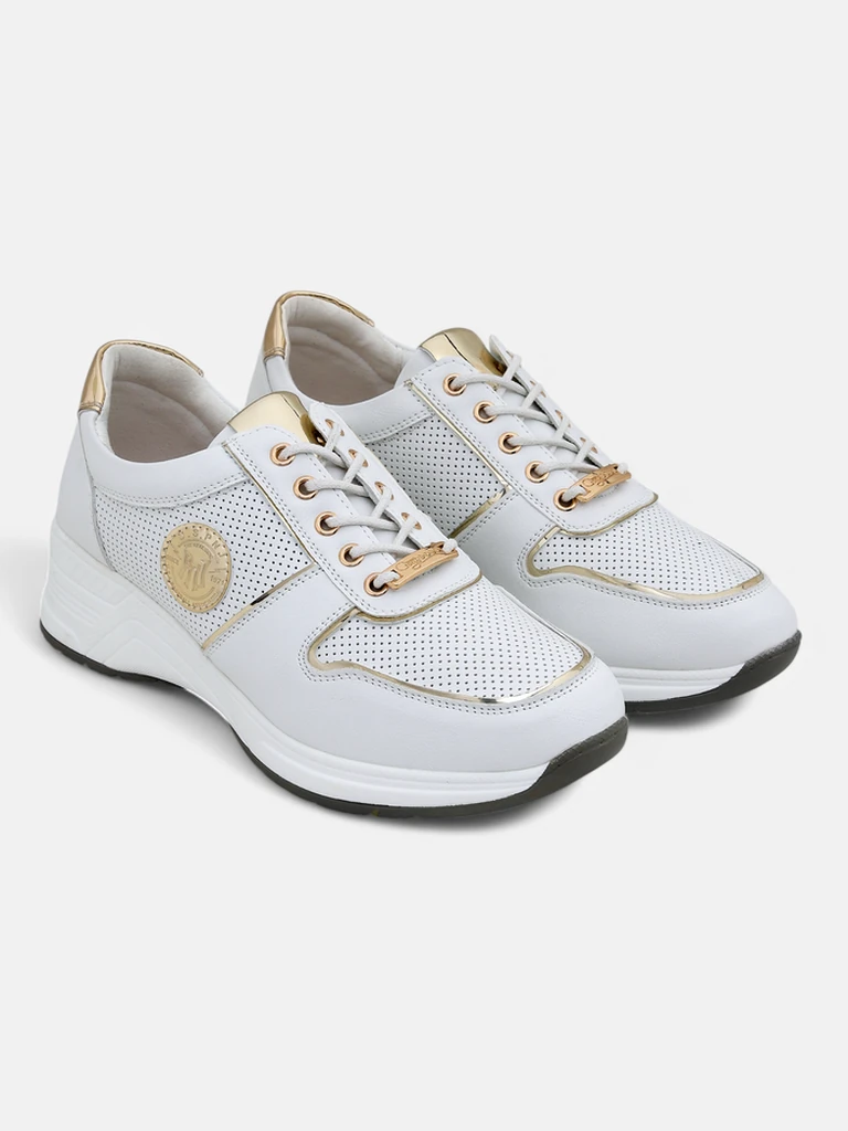 Calista Athena naiste tennised on ainulaadsed jalanõud, mis ühendavad spordijalatsite mugavuse salendava ja elegantse 4 cm kõrguse platvormiga. Pealismaterjal on valmistatud kvaliteetsest öko-nahast, mis on täiendavalt perforeeritud parema ventilatsiooni tagamiseks ja kaunistatud kuldsete aktsentidega, tagades vastupidavuse ja luksusliku välimuse. Sisevooder on valmistatud naturaalsest pehmest nahast, mis tagab jalgadele maksimaalse mugavuse ja hoiab ära hõõrdumise isegi tundidepikkusel kandmisel. Jalanõud on äärmiselt kerged, stabiilsed ja disainitud vastavalt kaasaegsetele trendidele – ühendades harmooniliselt vabaaja šiki sportliku iseloomuga. Ideaalne kevadiseks, suviseks ja sügiseseks kandmiseks, tänu perforatsioonidele hingab jalg isegi soojematel päevadel ning platvorm pikendab siluetti peenelt. - Premium-viimistlusega öko-nahk – vastupidav ja keskkonnasõbralik materjal. - Naturaalne sisetald minimeerib jalgade väsimust ja tagab hingavuse. - Kuldset värvi detailid lisavad igale rõivastusele originaalsust ja elegantsi. - Stabiilne platvorm ja libisemiskindel tald tagavad mugavuse isegi terve päeva vältel. 1. Igapäevaseks kandmiseks – kombineeri tennised heledate slim-teksade ja suure oversized nahktagiga. 2. Vabaaja šikk välimus – hoolitse nädalavahetuse mugavuse eest, kombineerides neid plisseeritud midi-seeliku ja basic T-särgiga. 3. Kohtumiseks või tööle – vali beežid kangast sigarett-püksid ja elegantne pintsak. Calista Athena tennised sobivad suurepäraselt ka suvekleitide või sportliku pusaga, sobitudes praeguste athleisure ja casual elegance trendidega. Jalanõude täiusliku välimuse säilitamiseks pühkige neid pehme niiske lapiga ja vältige läbimärjaks saamist – puhastage regulaarselt kuiva öko-naha harjaga. Naturaalsest nahast sisemust saab värskendada õrnade hooldusspreiidega. Hoidke jalanõusid kuivas kohas, vältige otsest päikesevalgust ja soojusallikaid. Valged metallik kuldsete aktsentidega platvormtennised on praegu üks suurimaid moehitte. Naised hindavad neid mugavuse, mitmekülgsuse ja stiilse sportliku elegantsi poolest.