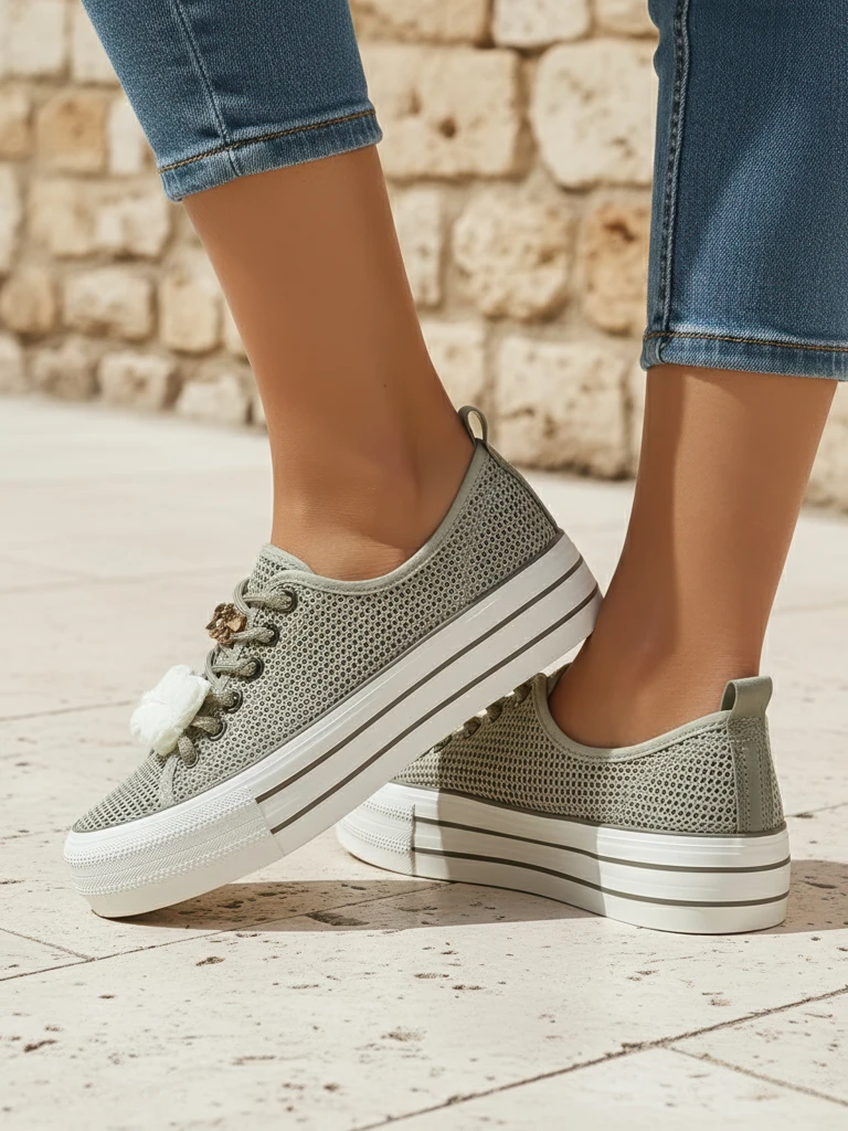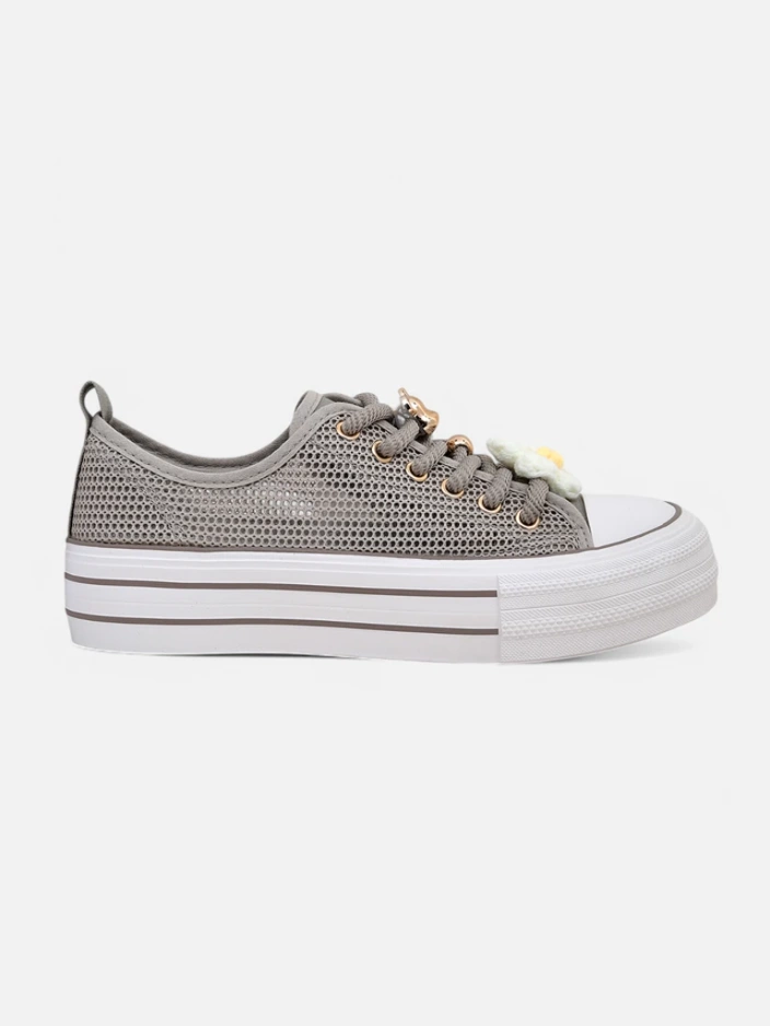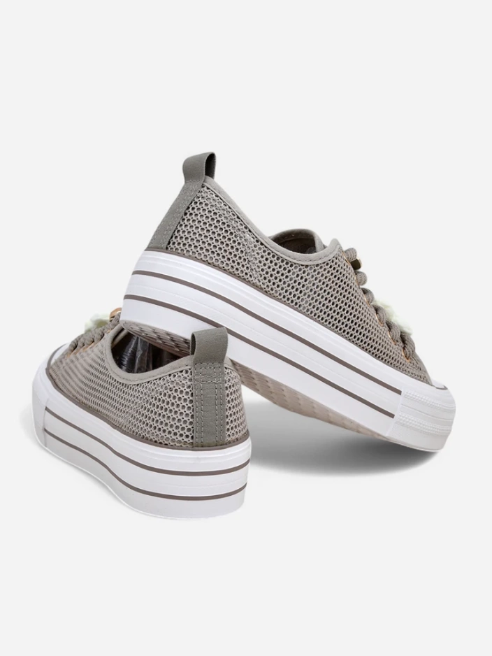 - Perforatsiooniga sneaksid, mis on valmistatud kangast, sisedetailid on samuti vooderdatud materjaliga. Väga mugavad tänu kummist tallale. Jalatsid sobivad paljude igapäevaste riietuste juurde!