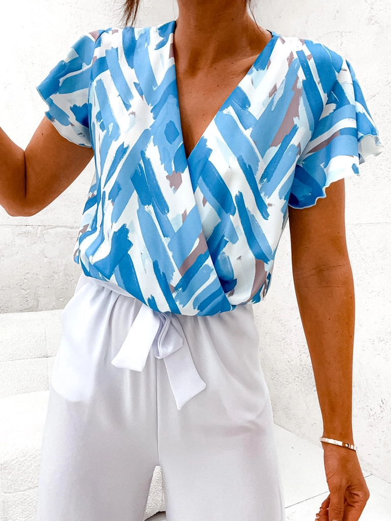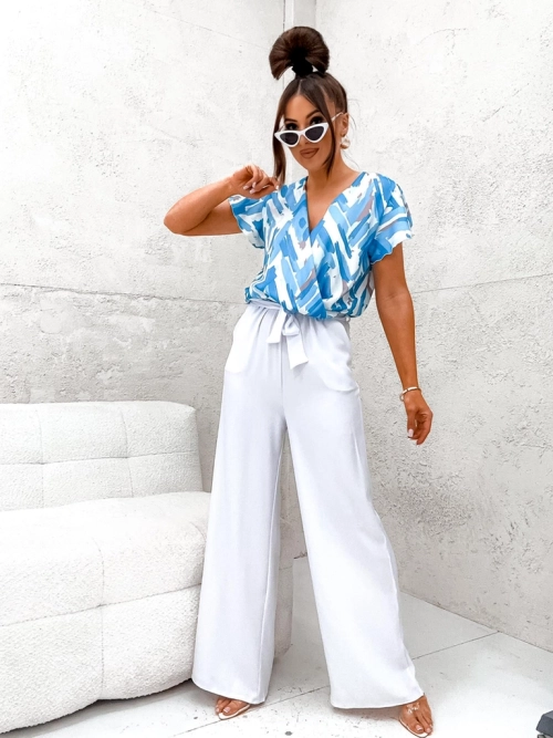 - Hämmastav naiste kombinesoon lühikeste varrukatega, V-kaelusega ja elastse vöökohtaga. Mudelil on laiad, pikad jalad. Lisaks on kaasas vöö. MÄRKUS: Mõõtmise täpsus (+/-) 1 cm.