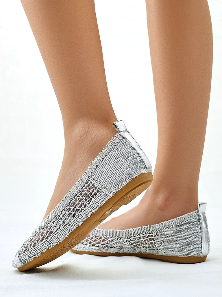 - Ainulaadsed ballerinad, mis on valmistatud perforeeritud kangast ja millel on ümmargune varvas. Pehme ökoloogilisest nahast sisetald tagab mugavuse. Need sobivad ideaalselt elegantsetele ja moodsaid riietustele!