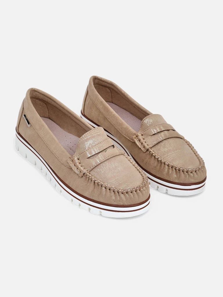 Lekkie, damskie mokasyny na płaskiej podeszwie. Model w stylu casual i jest wykonany ze skóry ekologicznej zamszowej, wkładka to skóra naturalna. Idealne do wiosennych outfitów!.