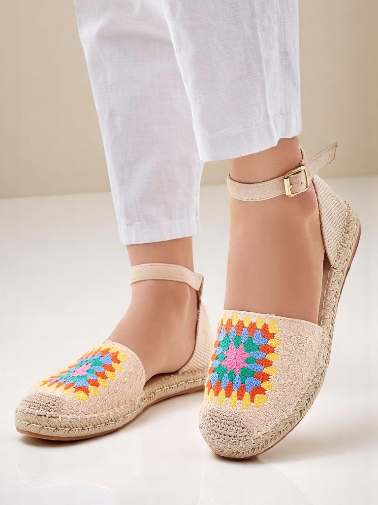 • Ainus naiste espadrillide mudel dekoratiivse tikandiga. Kogu mudel on valmistatud meeldivast kangast. Lame põhi, mis on kaunistatud jute nööriga, tagab mugavuse. Kinnitus ehetega. Täiuslik lisa suvistele riietustele!