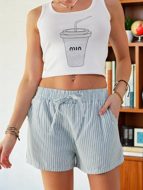 Royalfashion Naiste lühikesed püksid elastse vöökohaga ja nööridega triibulises mustris