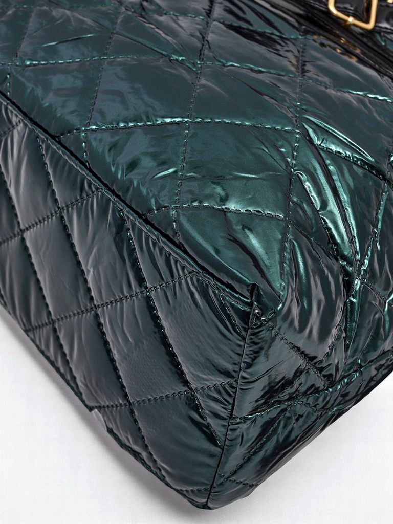 • Shopper-kott, mis on valmistatud tepitud, läikivast kangast ja lakitud ökonahast. 1 sahtel, 1 väline tasku, 3 sisemist taskut ning reguleeritav, eemaldatav rihm. Igapäevane elegants.