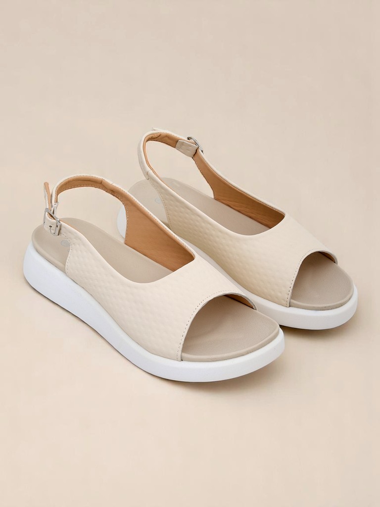 Bianca sandaalid on naiste sandaalid, mis on loodud kaasaegseid naisi silmas pidades, kes hindavad mugavust ja minimalismi suvises moes. Pealismaterjal on valmistatud kvaliteetsest, peene reljeefse tekstuuriga öko-nahast, mis tagab mitte ainult esteetilise välimuse, vaid ka vastupidavuse ja lihtsa puhastamise. Kinga sisemus ja sisetald on kaetud pehme tekstiilmaterjaliga, mis ümbritseb õrnalt jalga, aidates kaasa kandmismugavusele isegi terve päeva jooksul. Märtsikuu tald kergest, elastsest EVA vahust tagab suurepärase pehmenduse ja selle kõrgendus võimaldab optimaalset jala toestust. Pehme kummist libisemiskindel tald tagab ohutuse erinevatel pindadel. Külgmine kinnitus metallist pandlaga võimaldab sandaale täpselt jala kuju järgi reguleerida. Bianca sandaalide suurim eelis on nende universaalsus – minimalistlik must-valge disain sobib suurepäraselt nii vabaaja- kui ka elegantsemate rõivastega. Palja jala peal kantuna pakuvad need loomulikku jahutust ja kergust. Need sobivad suurepäraselt suvekleitide, linaste pükste ja teksapükstega. Kombineeri neid ažuurse käekoti ja kübaraga, et saavutada tüüpiline puhkuse välimus, vali linna stiilide jaoks ülemõõduline jakk või kombineeri lihtsa särgi ja sigaretipükstega – ideaalsed pakkumised erinevateks puhkudeks, alates jalutuskäikudest linnas kuni kohtumisteni sõpradega. Sandaalide suurepärases seisukorras hoidmiseks on soovitatav neid pühkida kergelt niiske lapiga, vältida pikaajalist kokkupuudet veega ja hoida õhurikkas kohas. Talda saab puhastada pehme harja või niiske käsnaga. Regulaarne hooldus aitab säilitada toote esteetilist välimust mitu hooaega. Platvormid ja heledad trükised on praegu üks tugevamaid suundumusi jalatsimoes – Bianca sandaalid sobivad suurepäraselt sellesse suunda. Disain ühendab modernsuse klassikalise Itaalia disainist inspireeritud stiiliga. Kui otsid sandaale, mis sobivad nii igapäevasteks kui ka pidulikeks välimusteks, on Bianca sandaalid moekas ja universaalne valik.