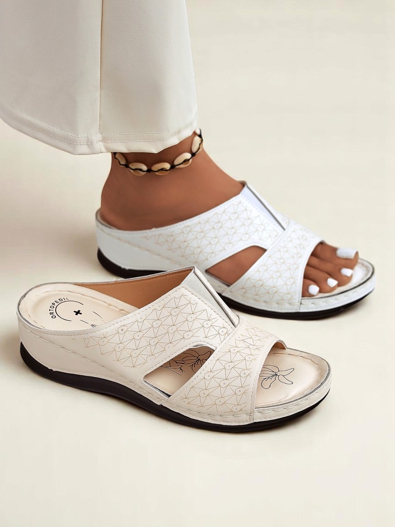 Sandali Ortopedica on naiste ortopeedilised plätud, mis ühendavad ajatu stiili ja uuendusliku hoolitsuse teie jalgade tervise eest. Pealismaterjal on valmistatud kõrgeima kvaliteediga naturaalsest nahast, millel on täpsed laserperforatsioonid, mis loovad elegantse, Vahemere motiividest inspireeritud geomeetrilise mustri. Nahk on pärit sertifitseeritud Euroopa parkimistöökodadest, tänu millele on plätud allergikutele ohutud ja äärmiselt vastupidavad. Ortopeediline sisetald on valmistatud memory foam vahust, mis mäletab jala anatoomilist kuju, tagades maksimaalse kasutusmugavuse kogu päevaks. Õrn mikrokiust vooder tagab suurepärase õhuringluse, vältides jalgade ülekuumenemist ja ebameeldivaid lõhnu. Sandali Ortopedica plätud on kerged ja varustatud libisemiskindla elastse EVA-materjalist tallaga, mis pehmendab iga sammu. Kontsa kõrgus on disainitud nii, et see leevendaks selgroogu ja liigeseid ning parandaks kõndimisel kehahoiakut. Omadused ja eelised: - Vähendavad jalgade väsimust - Parandavad vereringet tänu ergonoomilisele kujule - Ideaalne inimestele, kellel on lamedad jalad või jalgade valu Stiiliideed: 1. Vabaaja stiil: Kombineeri linaste pükste ja lihtsa, heleda särgiga – ideaalne igapäevasteks ostudeks või jalutuskäiguks linnas. 2. Mugav tööle: Kombineeri jakiga ja riidest culottes pükstega, et olla mugav, säilitades samas professionaalse välimuse. 3. Nädalavahetuse lõõgastus: Plätud sobivad suurepäraselt lillelise suvekleidi või puuvillaste lühikeste pükstega. Hooldus ja puhastamine: Hoidke plätusid kuivas, õhurikkas kohas. Puhastage niiske lapiga ja kasutage spetsiaalseid naturaalse naha hooldusvahendeid. Ärge peske pesumasinas. Kaitske liigse päikesevalguse eest. Sandali Ortopedica on suurepärane valik kevad-suve hooajaks – lihtsad, heledad plätud on kohustuslikud iga naise garderoobis, kes hindab mugavust ja klassikalist elegantsi kooskõlas praeguste funktsionaalsete ja tervislike jalatsite trendidega.