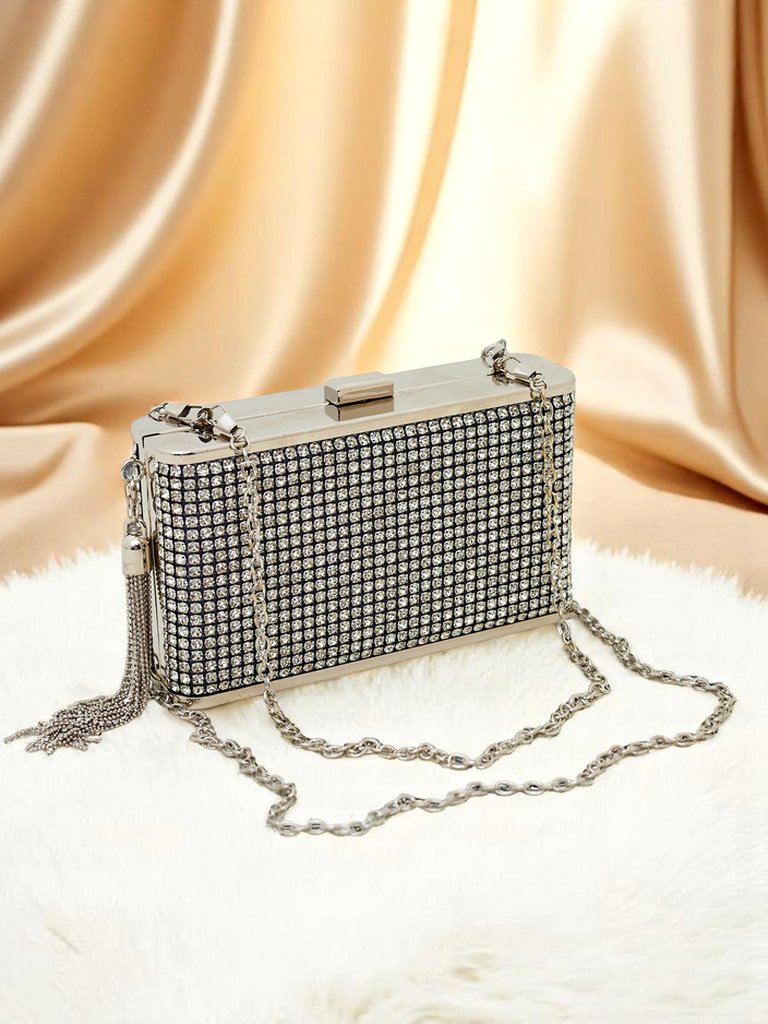 - Õhtu clutch, kaunistatud kivikestega, kinnitatav trukiga. Väike, elegantne, eemaldatavate rihmadega—kanna käes või õlal. Lisab igale riietusele sära!