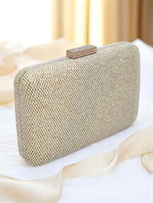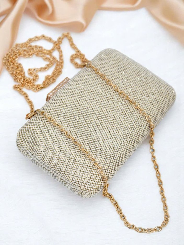 - Ümbrik-käekott on valmistatud ökoloogilisest nahast, kaetud läikiva niidi ja peene reljeefiga kangaga. Suletav trukiga, eemaldatava ketiga — elegants ja sära ühes.