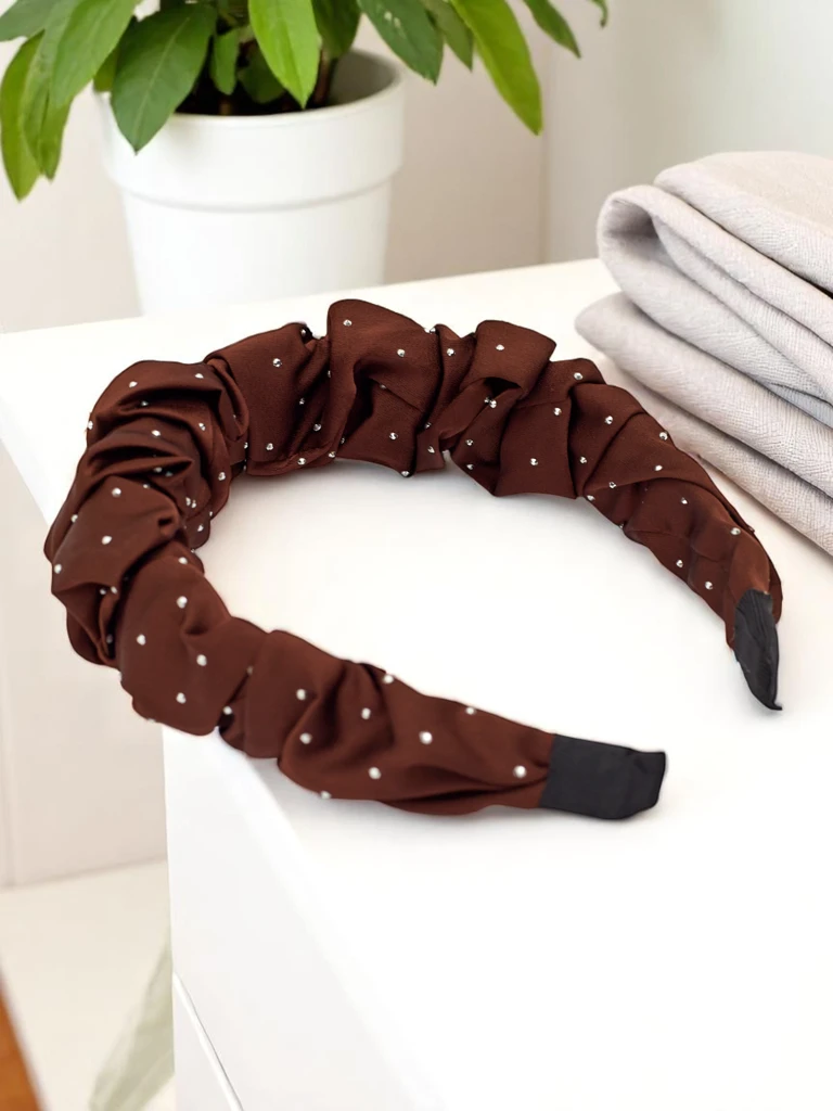 - Satiinist peapael, mis on kroogitud ja kaunistatud säravate kivikestega, on elegantne aksessuaar, mis lisab igale rõivastusele sära. Pehme kangas ja läikivad detailid loovad glamuurse efekti. Täiuslik erilisteks sündmusteks ja õhtusteks väljaminemisteks.