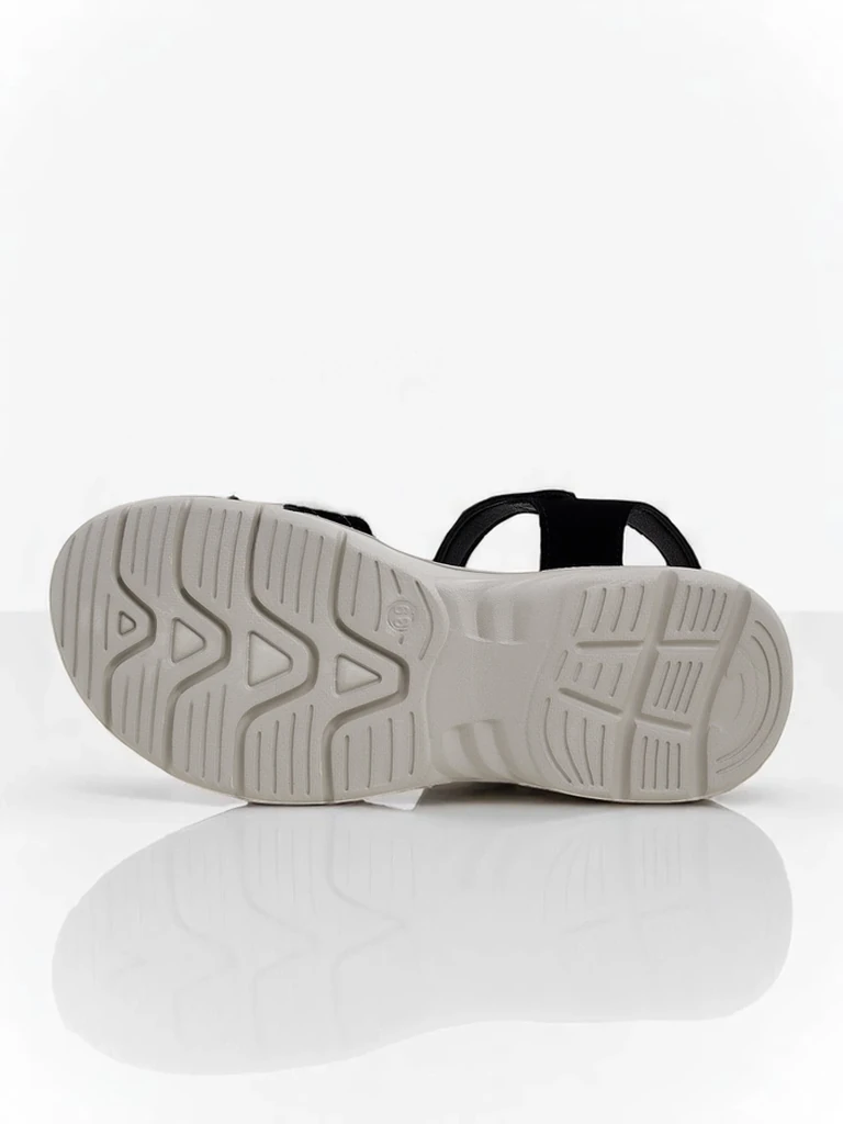 Sandaalid Santorini Nero on mugavuse ja usaldusväärsuse sünonüüm igapäevaseks kasutamiseks. Valmistatud nahasõbralikest materjalidest, tagavad need kerguse ja suurepärase õhuringluse kuuma ilmaga. Pealismaterjal on vastupidav mikrokiud, mis imiteerib tõhusalt naturaalset seemisnahka, kuid on palju vastupidavam mustusele, kergesti puhastatav ja kiiresti kuivav. Tänu õmblustele säilitavad sandaalid elegantse välimuse ja tagavad vastupidavuse aastateks. Erakordne tald on valmistatud kaasaegsest EVA-vahust – kerge polsterdus summutab suurepäraselt iga sammu, soodustades pikki jalutuskäike või tegevusi vabas õhus. Profileeritud sisetald on valmistatud ökoloogilisest sünteetilisest nahast, mis tagab kandmismugavuse kogu päevaks ilma hõõrdumise ja jalgade ülekuumenemiseta. Pahkluu reguleerimine metallpandlaga võimaldab ideaalselt kohandada iga jalaga. Sandaalid Santorini Nero rõhutavad vaba, kaasaegset stiili ja sobivad uusimate trendidega, kus valitseb tagasipöördumine mugavuse ja lihtsuse juurde. Minimalistlik disain ja universaalne must värv muudavad need kergesti stiliseeritavaks erinevateks puhkudeks: 1. Igapäevaseks kasutamiseks – koos lühikeste pükste ja puuvillase T-särgiga, et rõhutada puhkusevabadust. 2. Linnastiiliks – heledates toonides chinosid ja ülemõõduline särk sobivad suurepäraselt sandaalide elegantse lihtsusega. 3. Randa või piknikule – õhuline maksikleit või linased püksid sobivad nende kerge konstruktsiooniga. Sandaalide suurepärase vormi säilitamiseks soovitame neid regulaarselt niiske lapiga pühkida ja vältida tugevaid pesuvahendeid. Hoida kuivas, õhurikkas kohas. Santorini Nero on valik, mis ühendab ajatu stiili praktilisusega – ideaalne inimestele, kes hindavad mugavust, minimalismi ja universaalsust. Need sandaalid sobivad suurepäraselt praeguste aeglase moe ja linna vabaaja trendidega.