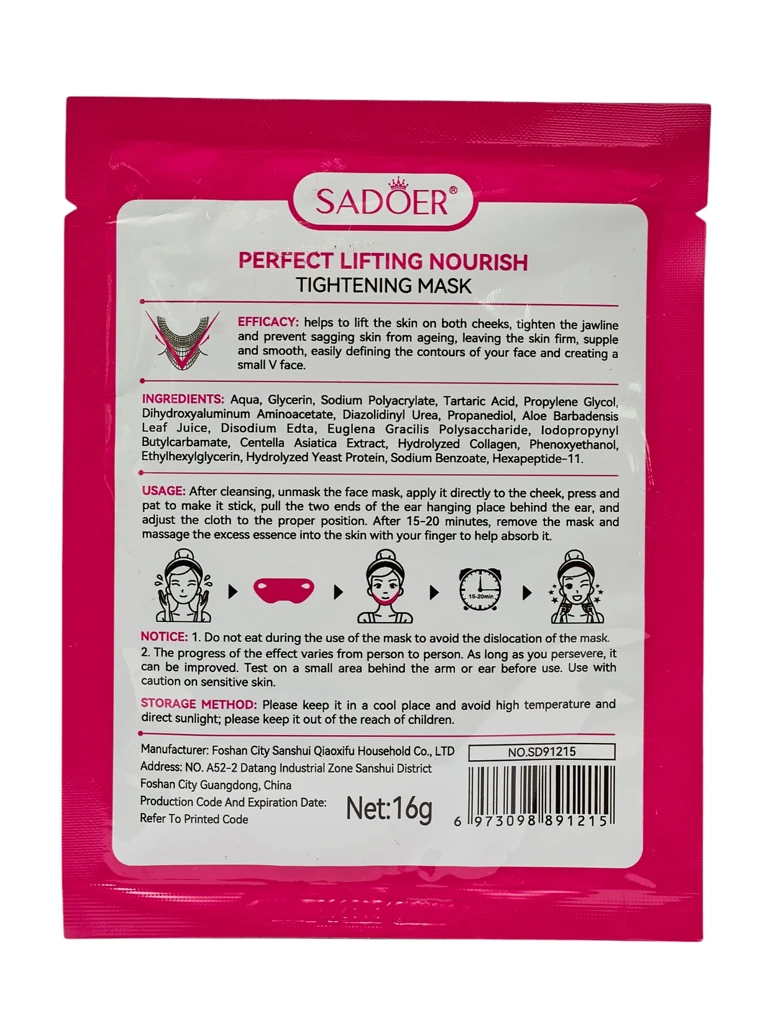 Sadoeri Venera Lifting Mask on kaasaegne näoovaali pinguldav mask, mis on inspireeritud Vana-Kreeka ja Itaalia hooldusrituaalidest. Valmistatud uuenduslikust hüdrogeelmaterjalist, rikastatud täiustatud toimeainetega, toimib komplekselt: intensiivselt pinguldab, niisutab ja silub märgatavalt kortse lõualuu ja põskede piirkonnas. Peamised koostisosad on vesi, glütseriin, hüdrolüüsitud kollageen, Aasia vesinaba ekstrakt (Centella Asiatica), aaloe ekstrakt (Aloe Barbadensis), hüdrolüüsitud pärmiproteiinid ja Euglena Gracilis vetikate polüsahhariidid. Viinhappe (Tartaric Acid), hüaluroonhappe ja aminohapete kombinatsioon tagab intensiivse niisutuse, elastsuse ja kaitse vananemise mõjude eest. Kasutatav tehnoloogia hõlmab maski pingutamist lõualuu all ja põskedel, mis aitab nahka tõsta ja selle elastsust parandada ning kaitseb lisaks kollageeni ja elastiini lagunemise eest. Mask sobib suurepäraselt näonahale, vähendades tõhusalt lõtvumist ja parandades V-liini kontuuri. Juba pärast esimest kasutamist muutub nahk pringimaks, elastsemaks ja märgatavalt siledamaks. Süstemaatiline kasutamine aitab vähendada peenete joonte nähtavust ja parandada näoovaali. Stilinõuanded – 3 ideed kombineerimiseks: 1. Suurepärane pinguldav protseduur enne tähtsat väljasõitu – kasuta maski hommikul, et nahk oleks enne õhtust meiki peo või gala jaoks pingul. 2. SPA-rituaal kodus – kombineeri siidist hommikumantli ja puuvillase peapaelaga, et luua luksuslik hooldusrituaal kodus. 3. Kaugtöö ja videokonverentsid – kanna mask peale pausi ajal, et kiiresti parandada välimust ja enesekindlust kaamera ees. Säilitamine ja hooldus: Hoida maski jahedas ja kuivas kohas, vältida kõrgeid temperatuure ja otsest päikesevalgust. Pärast kasutamist ärge peske materjali, mask on ühekordne. Enne esimest kasutamist tehke allergia test, eriti tundliku naha korral. Hoida lastele kättesaamatus kohas. Trendid: Praegu on V-liini hooldus ja nahapingulduse trend Euroopas ja Aasias tohutult populaarsust kogumas. Näoovaali modelleerimise tarvikud, nagu pinguldavad hüdrogeelmaskid, on kaasaegses koduses vananemisvastases hoolduses bestsellerid.