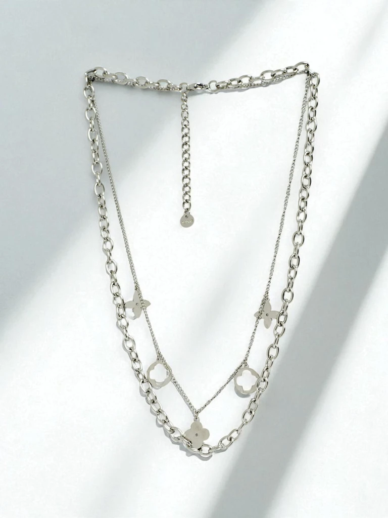 Hõbedane Florentia Stella kaelakee topeltketiga ja ripatsitega – ideaalne igale stiilile.
