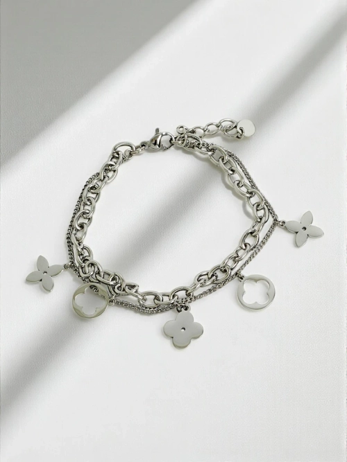 Calista käevõru on valmistatud kvaliteetsest roostevabast terasest, mida iseloomustab vastupidavus, tuhmumiskindlus ja hüpoallergeensus. Täpse poleerimistehnoloogia kasutamine muudab selle pinna läikivaks ja iga detail – alates tugevatest lülidest kuni peenelt valmistatud lillekujuliste ripatsiteni – näeb välja äärmiselt elegantne. Tänu roostevabale terasele ei kaota käevõru oma sära isegi igapäevasel kandmisel ega vaja keerulist hooldust. Loodusest inspireeritud motiivide komplekt muudab käevõru kaunilt valgust peegeldavaks, köites pilke nii peenuse kui ka modernsusega. Toode ei sisalda niklit, mistõttu on see ohutu ka allergiasoovidega inimestele. Calista käevõru peamised eelised on universaalne disain ja lihtne kohandatavus paljude stiilidega. See näeb suurepärane välja nii igapäevastes kombinatsioonides – näiteks sileda särgi ja teksadega, kui ka piduliku riietuse täiendusena, näiteks elegantse kleidi või ülikonnaga. Sel hooajal on moes hõbeda kombinatsioon pastelltoonidega ja monokromaatilised stiilid, kus käevõru rõhutab minimalistlikku välimust. Stiilisoovitused: 1. Vabaaja – valge särk, heledad teksad ja mokassiinid, Calista käevõruga randmel. 2. Kontor – klassikaline tumesinine ülikond, õrn topp ja peenike kell komplekti jaoks. 3. Õhtu – must, liibuv kleit, kontsad ja pärlkõrvarõngad väljendusrikka efekti saavutamiseks. Käevõru on kõige parem hoida kuivas kohas, eraldi teistest ehetest, et vältida kriimustusi. Puhastamiseks piisab õrnast lapist – poleerimine säilitab selle sära pikka aega. Vältida kokkupuudet vee ja kemikaalidega, et säilitada laitmatu välimus. Praegu on lillemotiivid ja peened hõbedased ehted üks kuumimaid trende nii moelavadel kui ka igapäevaelus.