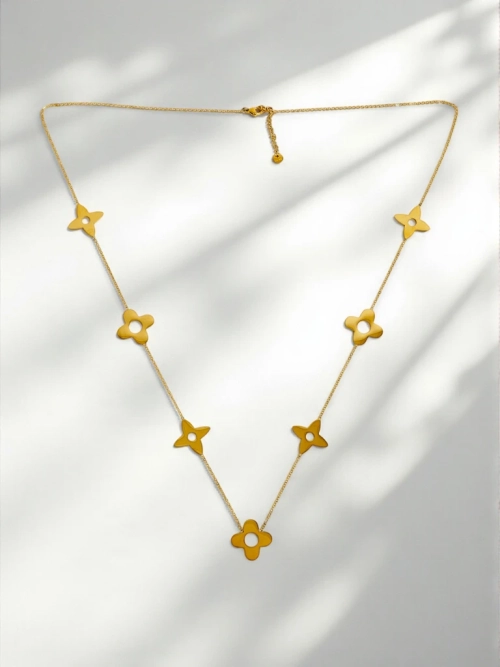 Aurelia Fiorenza kaelakee on kaasaegne pakkumine, mis on inspireeritud klassikalisest Itaalia kunstist ja loodusmotiividest. See on valmistatud roostevabast terasest, mis on kaetud 18-karaadise kullaga PVD-tehnoloogias – tänu sellele säilitab ehe oma sära pikka aega, on vastupidav kulumisele ja välisteguritele. PVD kullatis tagab hüpoallergeense kvaliteedi ja kõrgeima kandmismugavuse, põhjustamata ärritust isegi tundlikul nahal. Aurelia Fiorenza on ainulaadne kombinatsioon õrnast ketist ja kuuest lillemotiivist – igaüks neist on täpselt välja lõigatud, kergelt kumer, andes tervikule kolmemõõtmelise efekti. Kinnitatakse mugava karabiinhaagiga, millel on pikkuse reguleerimise võimalus, kohandub individuaalsete vajadustega. See kaelakee on ehe, mis on täis väljendusrikast peenust – see valgustab suurepäraselt nii igapäevaseid kui ka õhtuseid rõivaid. Minimalistlik, kuid samas efektne, on see ilus aktsent naistele, kes hindavad originaalsust ja ajatust. Stiilisoovitused: 1. Igapäevaselt: kanna koos valge linase särgi ja heledate teksadega – lillemuster rõhutab vaba ja värsket välimust. 2. Ärikohtumine: kombineeri elegantse musta bleiseri ja sileda pluusiga – kaelakee lisab ametlikule komplektile kergust ja naiselikku soojust. 3. Õhtune väljaminek: sobitage pastelltoonides šifoonist midikleidiga – lillelised detailid valgustavad kogu stiili ja tõmbavad tähelepanu. Hooldus ja säilitamine: Et nautida kaelakee ilu kauem, vältige kokkupuudet vee, parfüümide ja kemikaalidega. Hoidke kaasasolevas kotikeses ja puhastamiseks kasutage pehmet ehtelappi. Ehteid ei ole soovitatav kanda sportimisel või ujumisel. Lilleliste vormidega kaelakeed on üks hooaja suurimaid trende – ühendades endas naiselikkuse, kerguse ja elegantsi. Aurelia Fiorenza mudel sobib suurepäraselt praeguse botaaniliste motiivide ja isikupärastatud ehete moega, rõhutades iga naise individuaalset stiili.