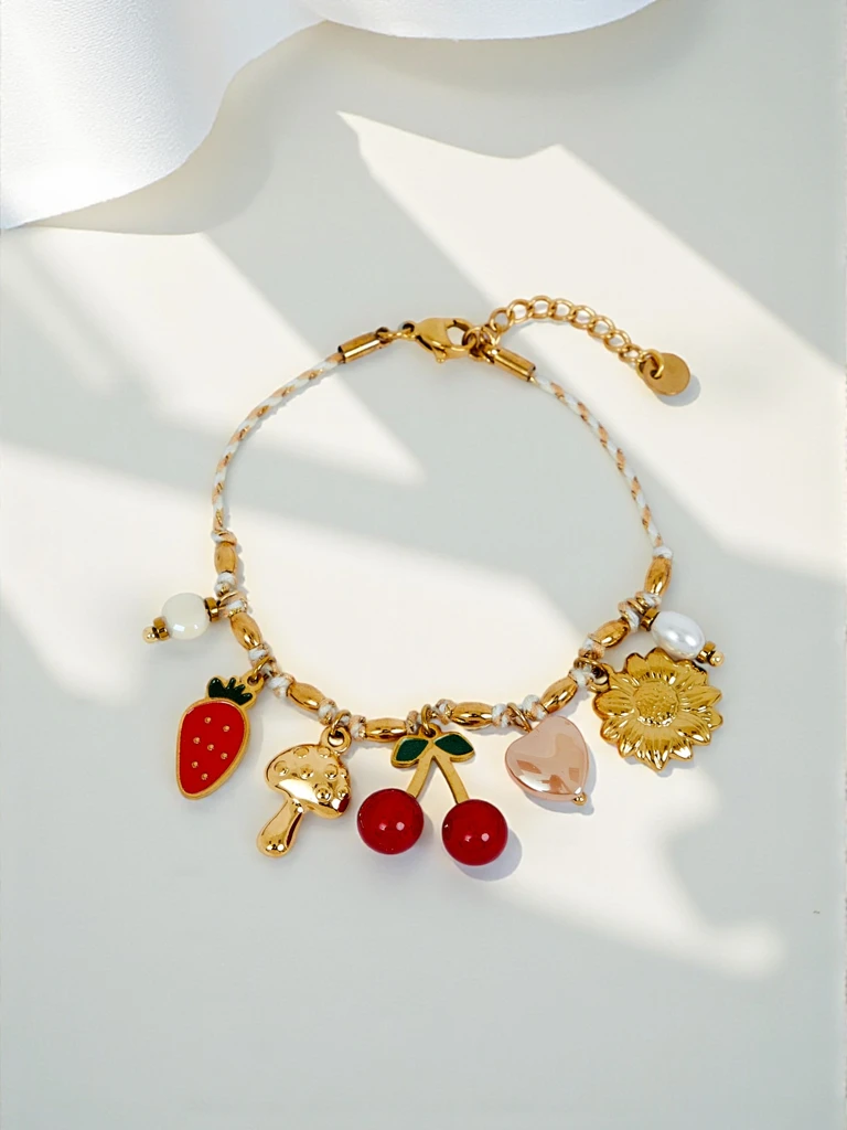 Bransoletka Ariadna Cherry– kolorowe charmsy i złociste detale