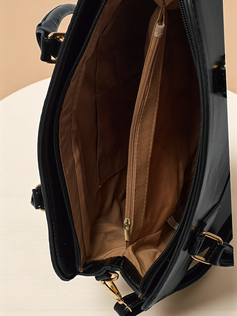 - Elegantne naiste käekott, valmistatud ökonahast ja reljeefse mustriga – ideaalne äri stiiliks. Mudelil on 1 sahtel vaheseinaga ja 4 taskut. Lisaks eemaldatav ja reguleeritav rihm.