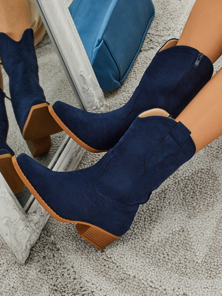 Madala kontsaga a'la kauboisaapad, valmistatud öko-seemisnahast. Tekstiilist sisetald, saapad kinnitatakse lukuga. Sobivad paljude naiselike stiilidega!