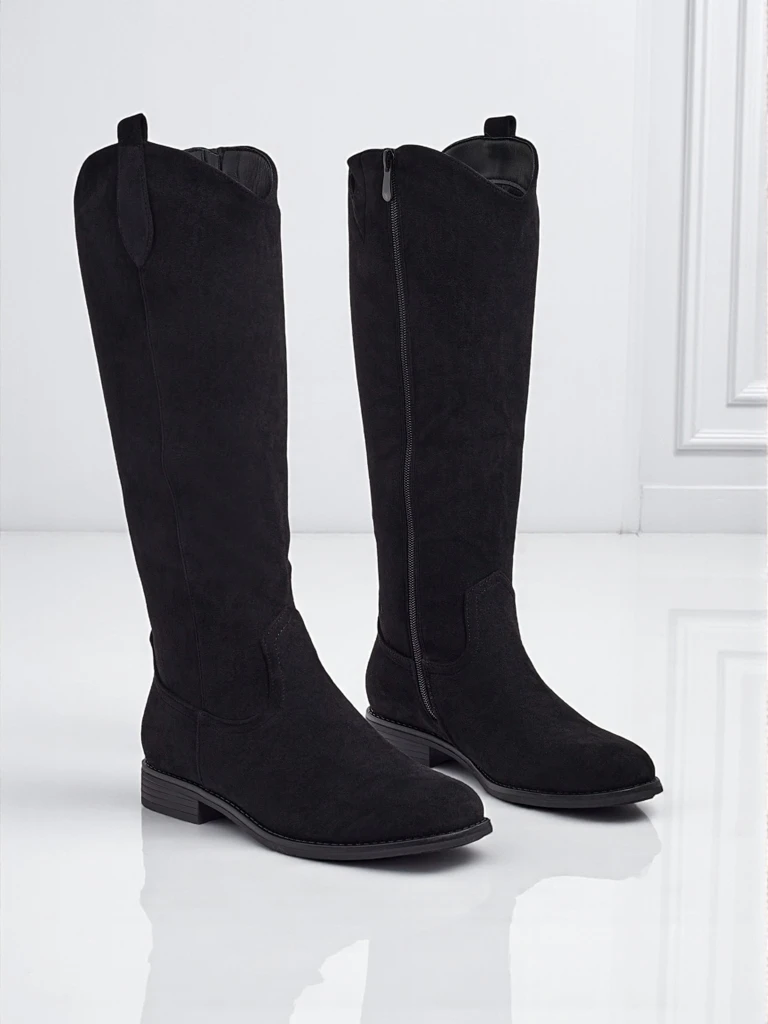Damskie kozaki eko zamszowe na słupku Zamerre