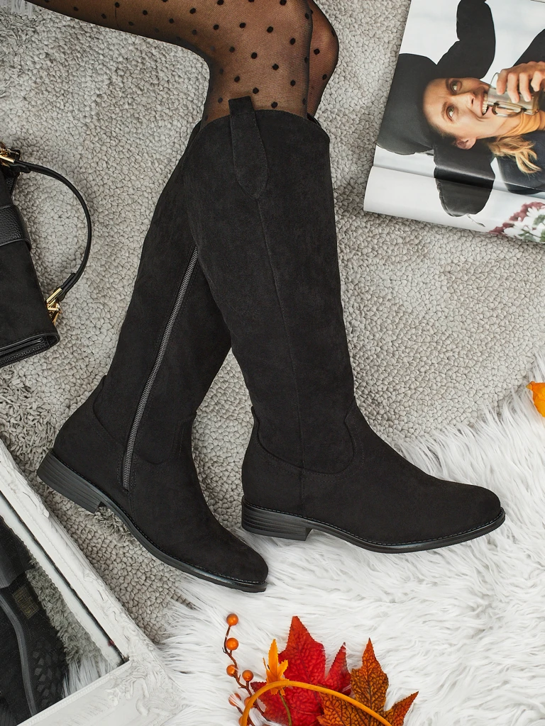 Damskie kozaki eko zamszowe na słupku Zamerre