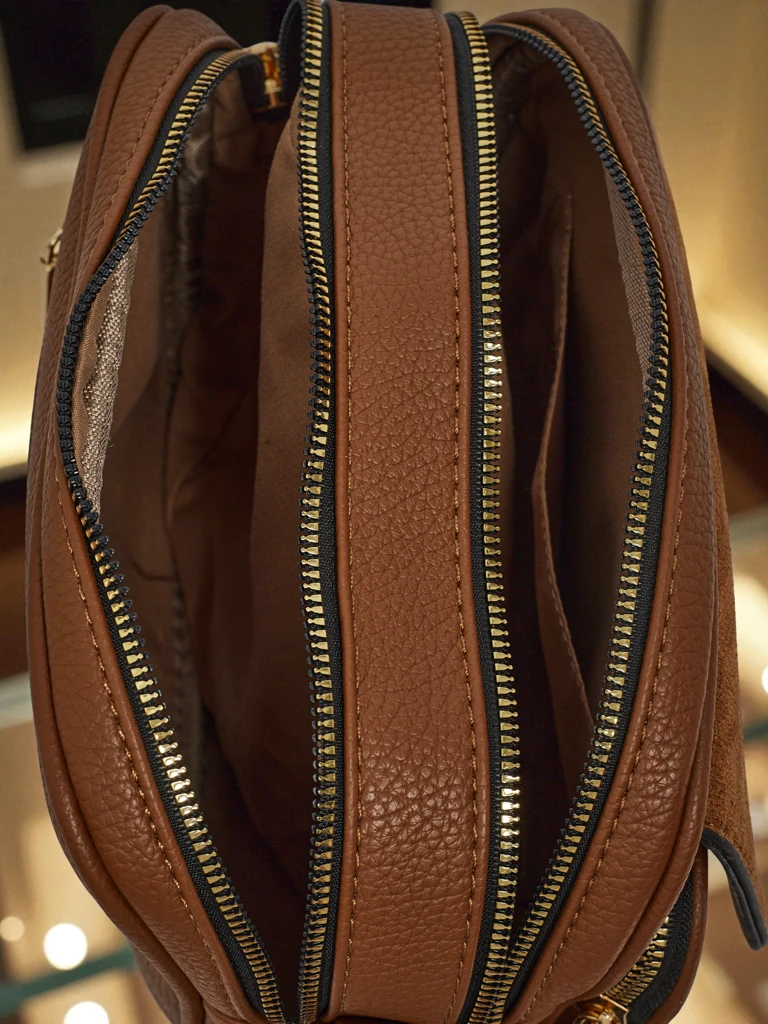 • Väike kott, mis on valmistatud ökonaha ja ökonahkse imitatsiooni kombinatsioonist. 2 sektsiooni, 3 taskut, lukk ja reguleeritav rihm. Stiil ja funktsionaalsus täiuslikus koosluses.