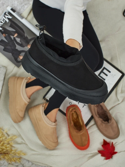 Świetne damskie zimowe buty typu śniegowce na grubszej podeszwie typu platforma. Cholewka wykonana jest ze skóry ekologicznej zamszowej, środek ocieplony futerkiem. Idealna baza na zimę!